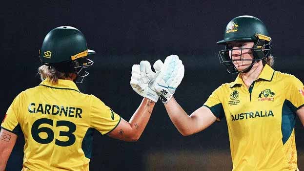 ഓസീസിന്റെ തുടക്കം അത്ര പോരായിരുന്നു. ഓപ്പണര്മാരായ ഫീബി ലിച്ച്ഫീല്ഡ് രണ്ടു പന്തില് നിന്ന് ഒരു റണ്സിനും ജോര്ജിയ വോള് ഏഴു പന്തില് നിന്ന് ആറു റണ്സിനും എലീസ് പെറി പത്തൊമ്പത് പന്തില് നിന്ന് പതിമൂന്നു റണ്സിനും പുറത്തായി. ആദ്യ ഇരുപത്തിനാല് റണ്സ് എടുത്ത സമയം കൊണ്ടു മൂന്നു വിലപ്പെട്ട വിക്കറ്റുകള് പോയപ്പോള് ഓസ്ട്രേലിയിയുടെ കാര്യവും പോക്കായ ലക്ഷണമായിരുന്നു. മുപ്പതു ബോളില് നിന്ന് ഇരുപതു റണ്സ് മാത്രം കൂട്ടിച്ചേര്ത്ത് ബെത്ത് മൂണി കൂടി മടങ്ങിയതോടെ സ്കോര് 68 റണ്സിനു നാലു വിക്കറ്റ. അഞ്ചാം വിക്കറ്റ് കൂട്ടുകെട്ടായിരുന്ന അനബെല് സതര്ലാന്ഡും (112 പന്തില് നിന്നു 98 റണ്സ് നോട്ടൗട്ട്) ആഷ്ലി ഗാര്ഡിനര് (73 പന്തില് നിന്ന് 104 നോട്ടൗട്ട്) ചേര്ന്നു നേടിയത്.