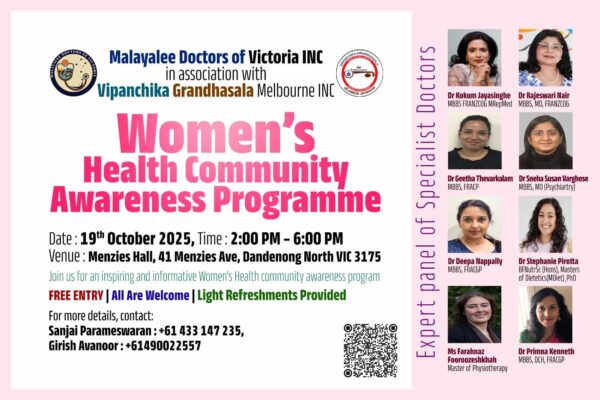 Australia NewsKerala NewsNews മെല്ബണില് വിമന് ഫസ്റ്റ് വനിതാ ആരോഗ്യ ബോധവല്ക്കരണ പരിപാടി ഒക്ടോബര് 19ന് 1 month ago1 month ago1 mins Read More