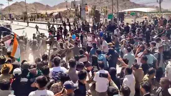 ലഡാക്ക് കത്തുന്നു, പോലീസുമായി ഏറ്റുമുട്ടലില് നാലു മരണം, വാങ്ചുക്ക് സമരം നിര്ത്തി