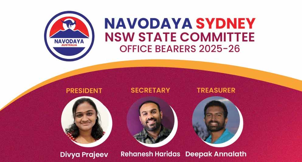 നവോദയ സിഡ്‌നി: ദിവ്യ പ്രജീവ്‌-പ്രസിഡന്റ്, രഹനേഷ് ഹരിദാസ്-സെക്രട്ടറി