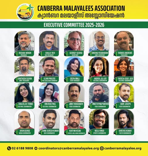 കാന്ബറ: കാന്ബറ മലായാളീസ് അസോസിയേഷന്റെ (സിഎംഎ) 2025-26 വര്ഷത്തേക്കുള്ള പുതിയ ഭരണസമിതിയെ തിരഞ്ഞെടുത്തതായി പ്രസിഡന്റ് രവി മേനോന് അറിയിച്ചു. പ്രവര്ത്തനത്തിന്റെ മുപ്പതു വര്ഷങ്ങള് പൂര്ത്തിയാക്കുന്ന സിഎംഎ യുടെ മുന്നോട്ടുള്ള പ്രയാണം ഇനി ഇവരുടെ കൈകളില് സുരക്ഷിതം. വളരെ ചെറിയൊരു അനൗപചാരിക കൂട്ടായ്മയായി പ്രവര്ത്തനം തുടങ്ങിയ കാന്ബറ മലയാളീസ് അസോസിയേഷനാണ് ഇന്നിപ്പോള് നൂറുകണക്കിന് അംഗങ്ങളും ആണ്ടു മുഴുവന് പരിപാടികളും ഒത്തുചേരലുകളുമായി വളര്ന്നിരിക്കുന്നത്. 1996 മുതല് ഇക്കൊല്ലം വരെ മുടക്കം കൂടാതെ നടത്തുന്ന ഓണാഘോഷം സംഘടയിലെ എല്ലാവരും കുടുംബസമേതം പങ്കെടുക്കുന്ന പരിപാടിയാണ്. എല്ലാ വര്ഷവും ഓണാഘോഷത്തിനു പുറമെ സ്പോര്ട്സ് മത്സരങ്ങള്, സാംസ്കാരിക പരിപാടികള്, ബാര്ബക്യൂ തുടങ്ങി വൈവിധ്യമുള്ള ഒത്തുചേരലുകളാണ് സിഎംഎയുടെ ശക്തി.