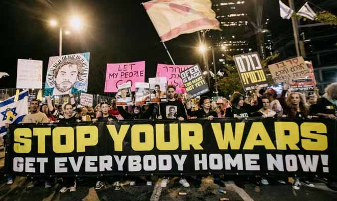 യുദ്ധം നിര്ത്താനും ബന്ദികളെ തിരികെയെത്തിക്കാനുമായി ടെല്അവീവില് കൂറ്റന് റാലി