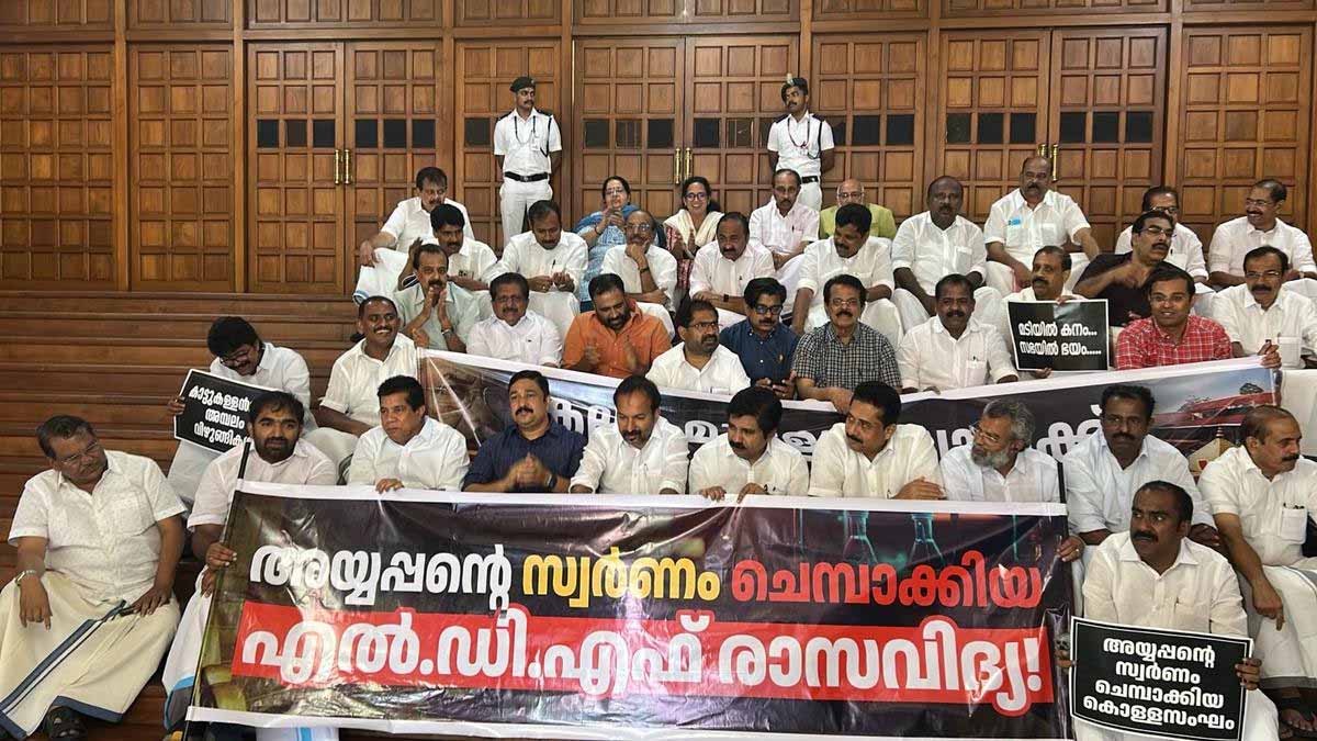 തിരുവനന്തപുരം: ശബരിമലയിലെ സ്വര്ണപ്പാളി വിഷയത്തില് നിയമസഭയില് ബാനര് ഉയര്ത്തി പ്രതിഷേധിച്ച പ്രതിപക്ഷ എംഎല്എമാരില് നിന്നു ബാനര് പിടിച്ചുവാങ്ങുന്നതിനിടെ വാച്ച് ആന്ഡ് വാര്ഡുമായി കയ്യാങ്കളി. സഭയില് വാച്ച് ആന്ഡ് വാര്ഡിനെ ആക്രമിച്ചുവെന്ന് ആരോപിച്ച് മൂന്നു പ്രതിപക്ഷ എംഎല്എമാരെ സ്പീക്കര് സസ്പെന്ഡ് ചെയ്തു. അങ്കമാലി എംഎല്എ റോജി എം ജോണ്, കോവളം എംഎല്എ എം വിന്സന്റ്, ചാലക്കുടി എംഎല്എ സനീഷ്കുമാര് ജോസഫ് എന്നിവരാണ് സസ്പെന്ഷനിലായത്. ഇതു സംബന്ധിച്ച് പാര്ലമെന്ററികാര്യ മന്ത്രി എം ബി രാജേഷ് അവതരിപ്പിച്ച പ്രമേയം സ്പീക്കര് അംഗീകരിക്കുകയായിരുന്നു. സ്വര്ണപ്പാളി വിഷയത്തില് തുടര്ച്ചയായ നാലാം ദിവസമാണ് പ്രതിപക്ഷം സഭാനടപടികള് സ്തംഭിപ്പിക്കുന്നത്. ദേവസ്വം മന്ത്രി രാജിവയ്ക്കുന്നതു വരെ പ്രതിഷേധം തുടരുമെന്ന് പ്രതിപക്ഷ നേതാവ് വി ഡി സതീശന് പറഞ്ഞു.