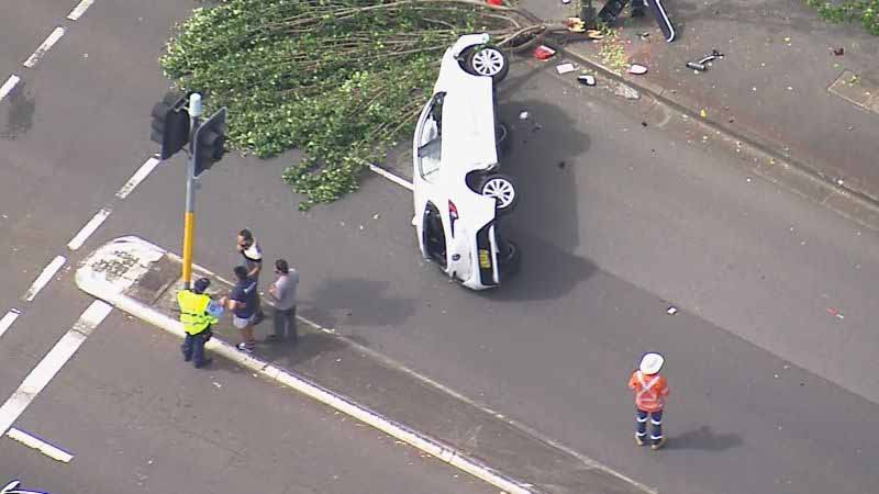 ഇതോടെ സമീപത്തുണ്ടായിരുന്ന ഒരു മരം പിഴുതു വീഴ്ത്തി ടൊയോട്ട കാര് മറിയുകയും ചെയ്തു. ഇതിനിടെയാണ് സമീപത്തുണ്ടായിരുന്ന തൊഴിലാളികള് അപകടത്തില് പെട്ടത്. ഉടന് സ്ഥലത്തെത്തിയ പോലീസ് തൊഴിലാളികളെ സമീപത്തുള്ള വെസ്റ്റ്മീഡ് ആശുപത്രിയിലേക്കു മാറ്റി. രണ്ടു കാറുകളുടെയും ഡ്രൈവര്മാര്ക്കും പരിക്കേറ്റിട്ടുണ്ട്. ഇരുപതു വയസും മുപ്പതു വയസുമാണ് കാറുകള് ഓടിച്ചിരുന്നവരുടെ പ്രായം. ഇവരെ സമീപത്തുള്ള ബ്ലാക്ക് ടൗണ് ആശുപത്രിയിലെത്തിച്ച് വൈദ്യപരിശോധനയ്ക്കു വിധേയരാക്കി. അഗ്നിശമന സേനയില് നിന്നും ആള്ക്കാരെത്തിയാണ് മരം മുറിച്ചു മാറ്റിയതും ഗതാഗത തടസം ഒഴിവാക്കിയതും.